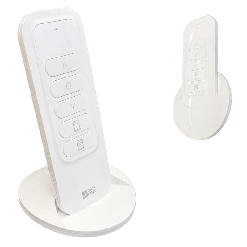Télécommande pour moteur Delta Dore ou pour moteur Bubendorff avec protocole X3D. Permet de commander un volet ou un groupe de volets roulants. Enregistrement de 2 positions favorites par volet ou par groupe.
